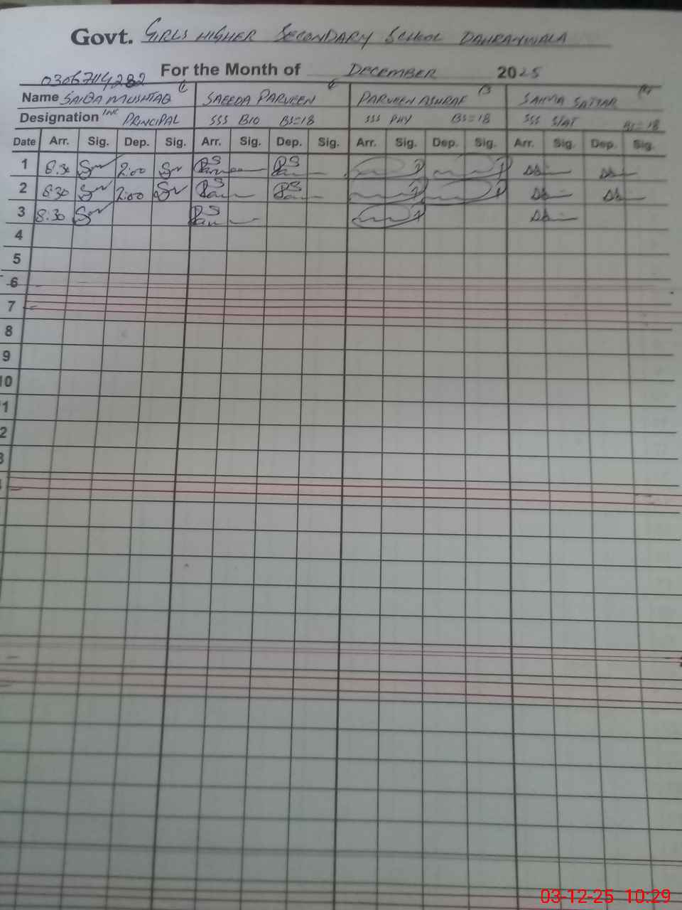 | Name: SA**** MU**** Designation: (School Headmaster's/Headmistress's) Principal Phone/Cell Number: 03**** |