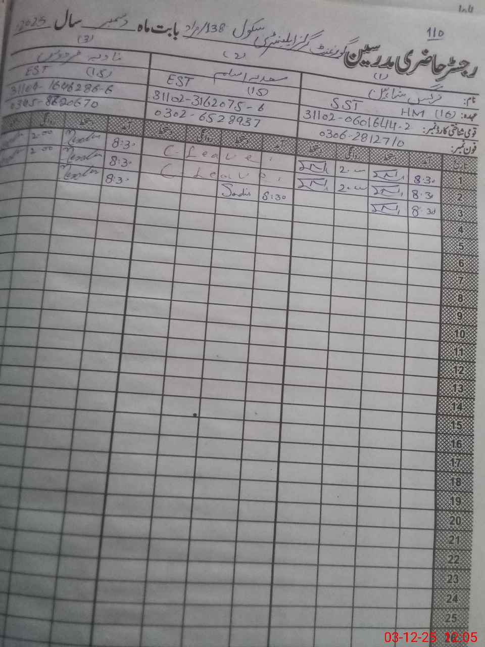 | Name: Na**** Sh**** Designation: (School Headmaster's/Headmistress's) SST Phone/Cell Number: 03**** |