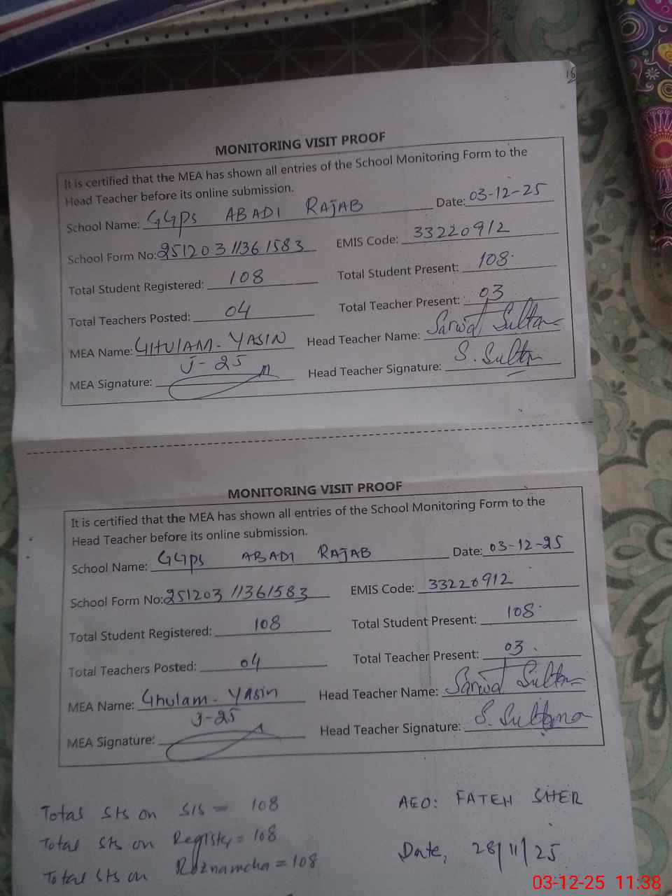 | EMIS Code: 33220912 | Name of School: GGPS ABADI RAJAB | |||