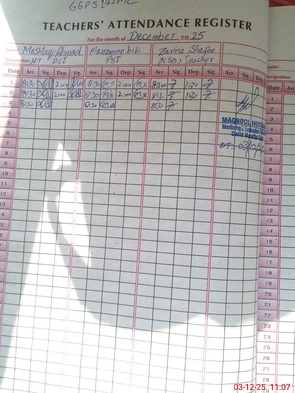 | Name: Mu**** Ah**** Designation: (School Headmaster's/Headmistress's) PST Phone/Cell Number: 03**** |