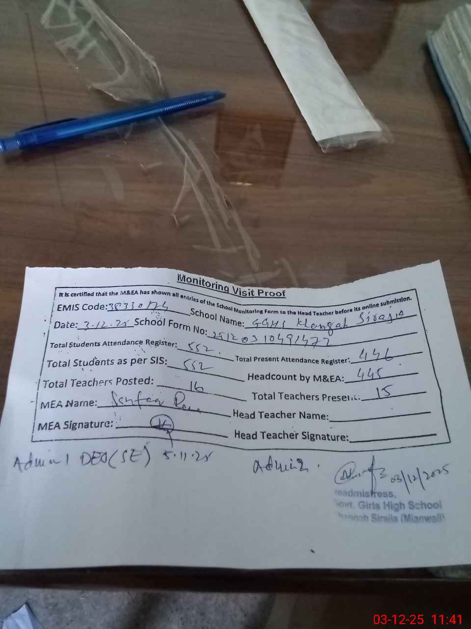 | EMIS Code: 38330174 | Name of School: GGHS KHAN QAH SERAJIA PO WAPDA COLONY KUNDIAN | |||