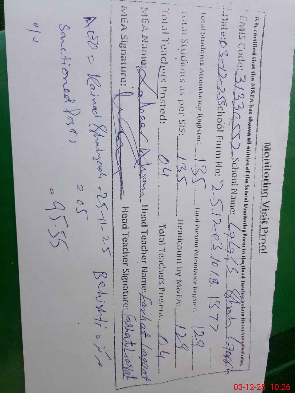 | Monitoring Date: 03-12-2025 | Start Time: 03-12-2025 09:00 AM | End Time: 03-12-2025 10:26 AM | Name of MEA: Za**** Ah**** | |