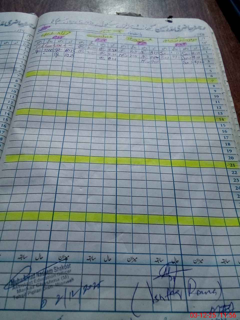 | CNIC | Full Name | Designation | R/C | Absence During Last Calender Month |