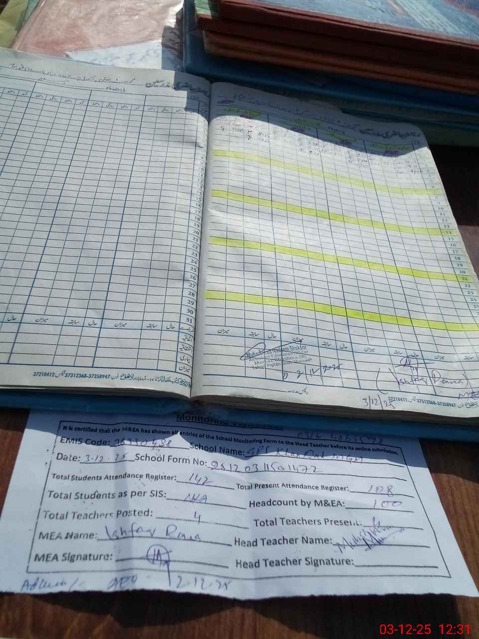 | Attendance Register | Head Teacher | MEA with School | Visit Proof |