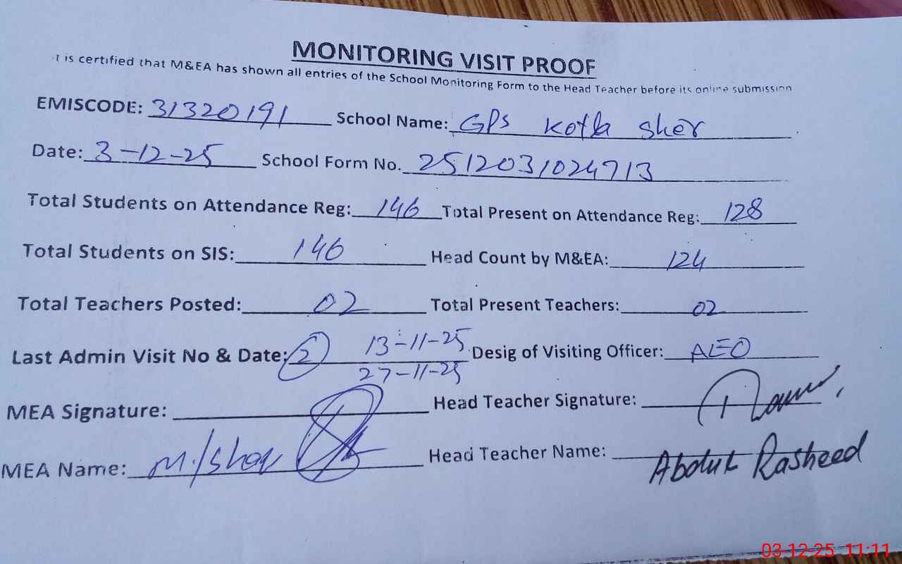 | EMIS Code: 31320191 | Name of School: GPS KOTLA SHAIR | |||