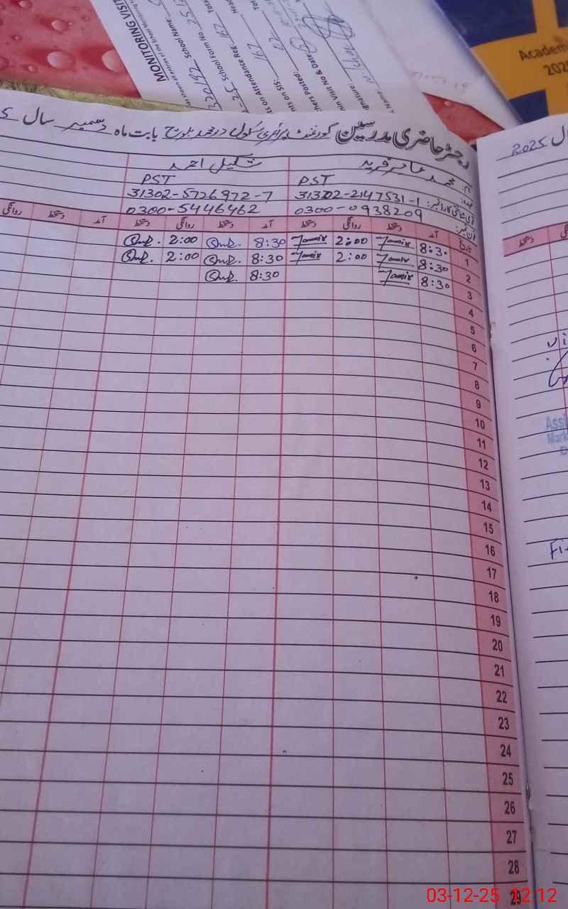 | Name: AB**** RA**** Designation: (School Headmaster's/Headmistress's) PST/PTC/JV Phone/Cell Number: 03**** |
