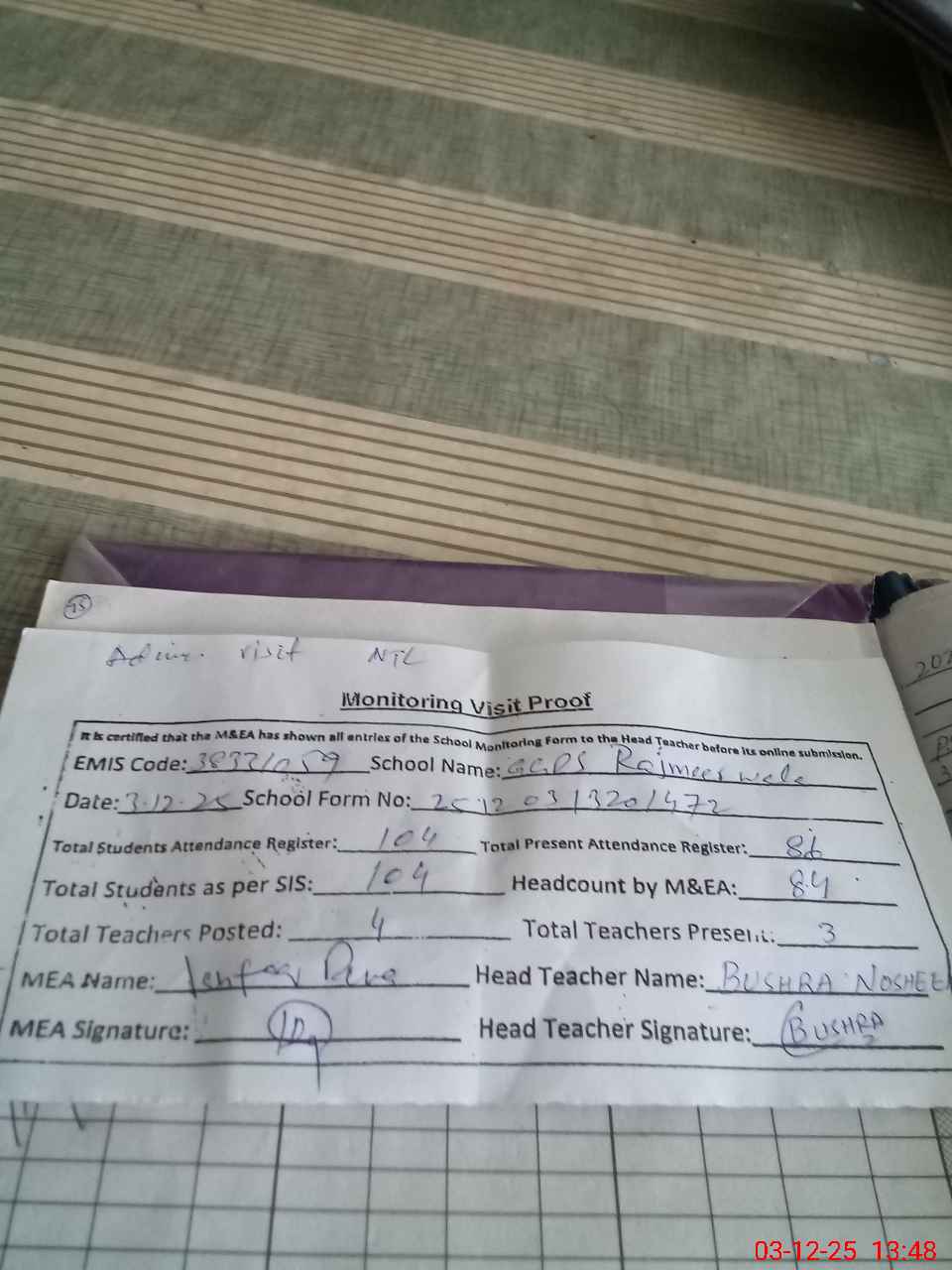 | EMIS Code: 38331059 | Name of School: GGPS RAJMIR WALA PO WAPDA COLONY | |||
