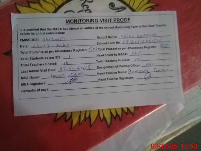 | EMIS Code: 34130050 | Name of School: GGES CHAJOKE | |||