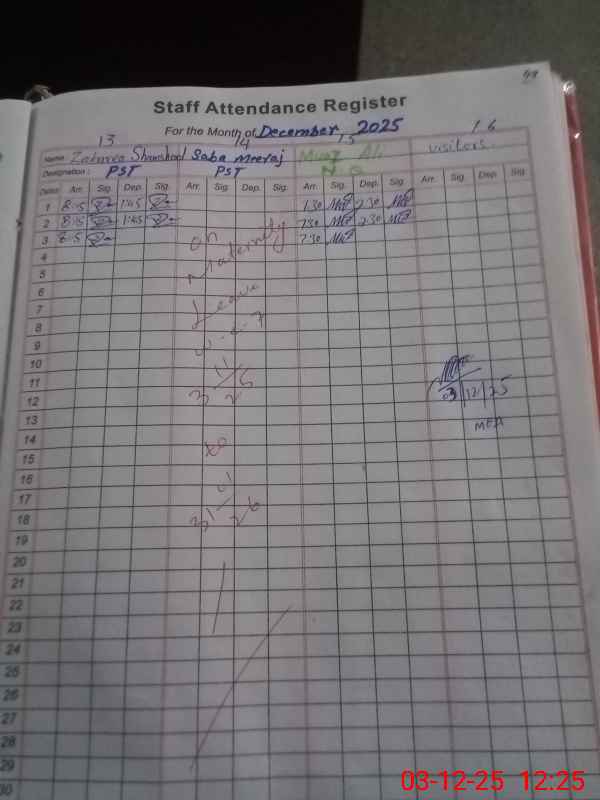 | Attendance Register | Head Teacher | MEA with School | Visit Proof |