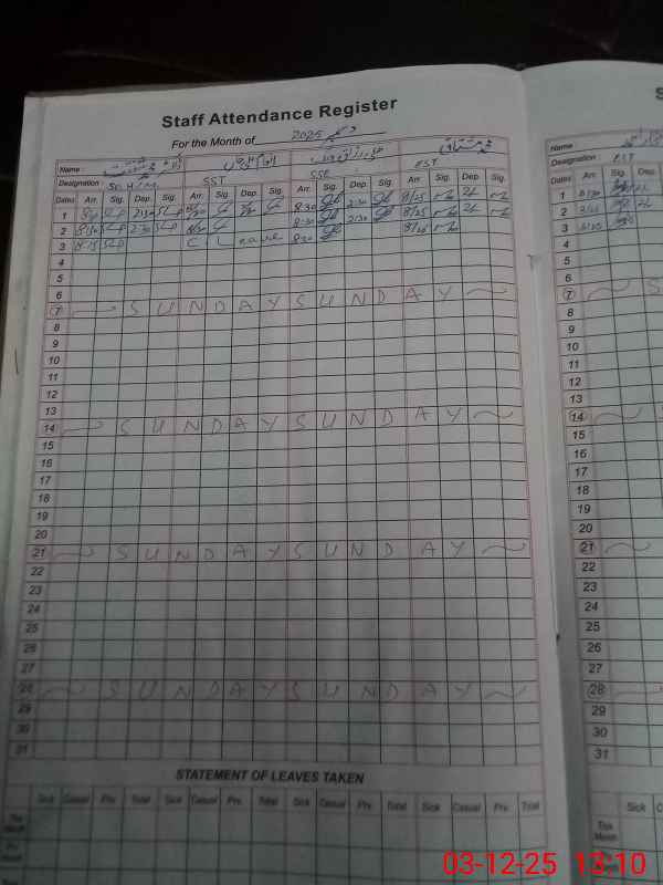 | Attendance Register | Head Teacher | MEA with School | Visit Proof |