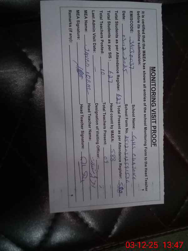 | Name: M.SH**** Designation: (School Headmaster's/Headmistress's) Headmaster Phone/Cell Number: 03**** |