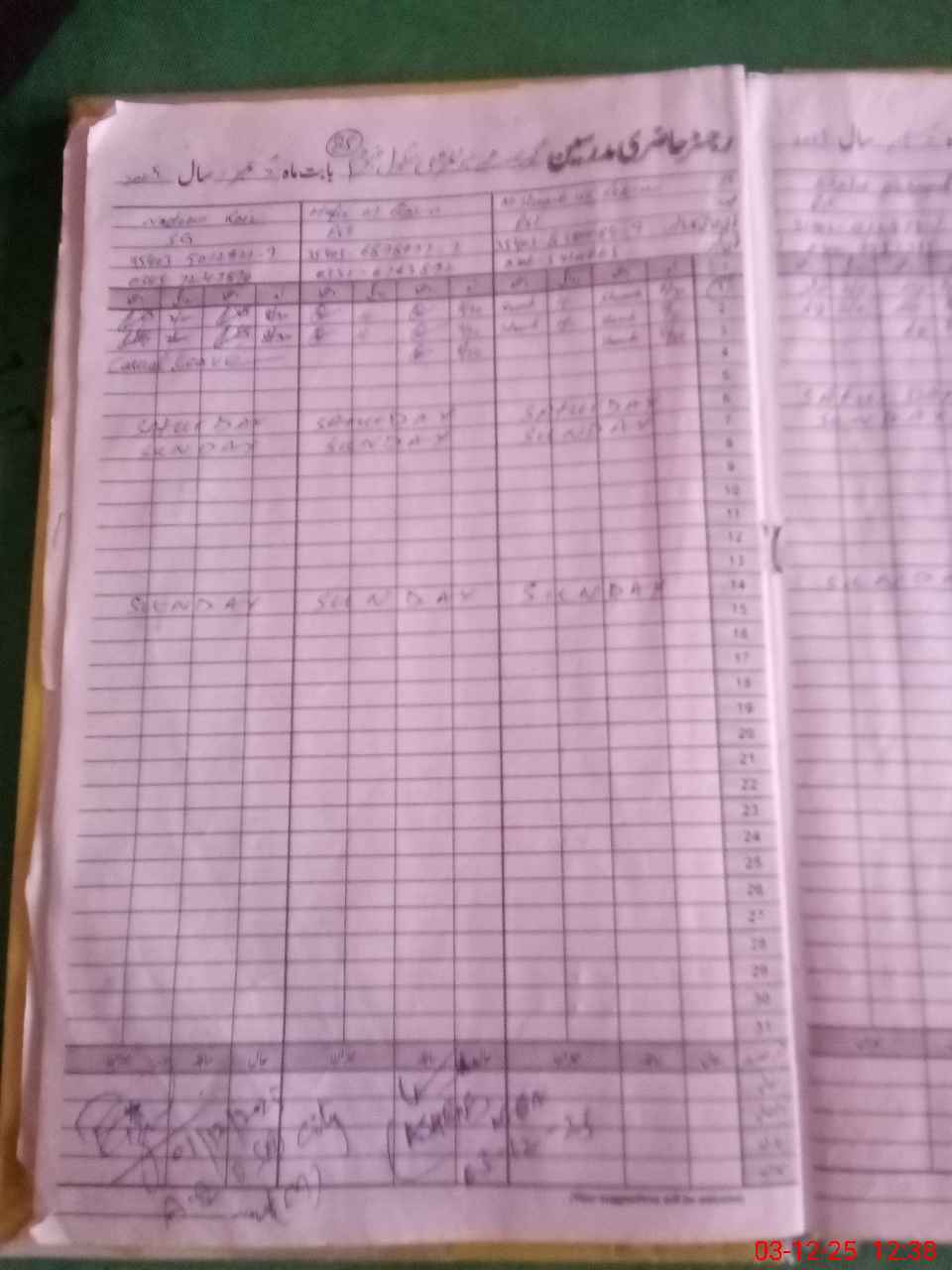| CNIC | Full Name | Designation | R/C | Absence During Last Calender Month |