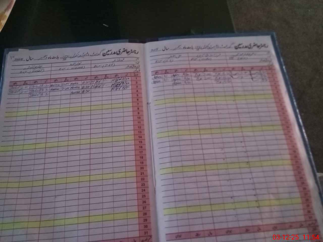 | CNIC | Full Name | Designation | R/C | Absence During Last Calender Month |