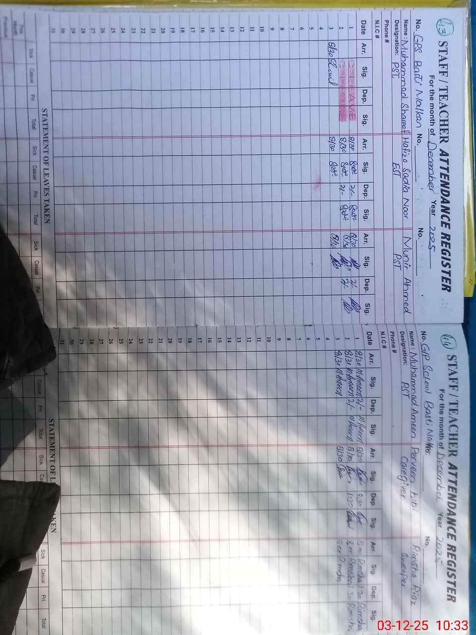 | Name: Mo**** SH**** Designation: (School Headmaster's/Headmistress's) PST Phone/Cell Number: 03**** |