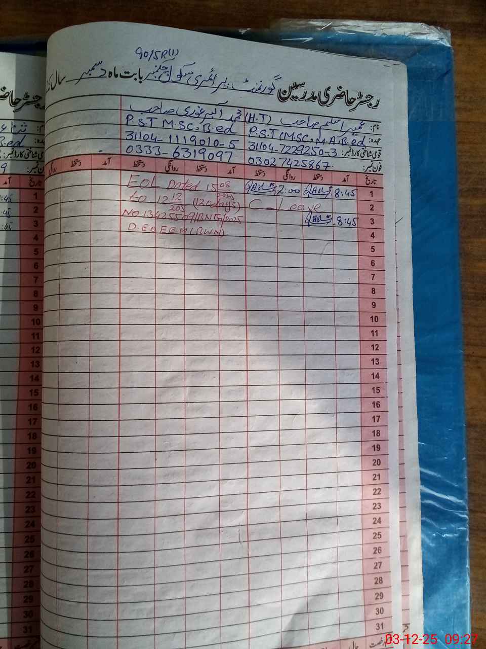 | Name: Um**** As**** Designation: (School Headmaster's/Headmistress's) PTC Phone/Cell Number: 03**** |