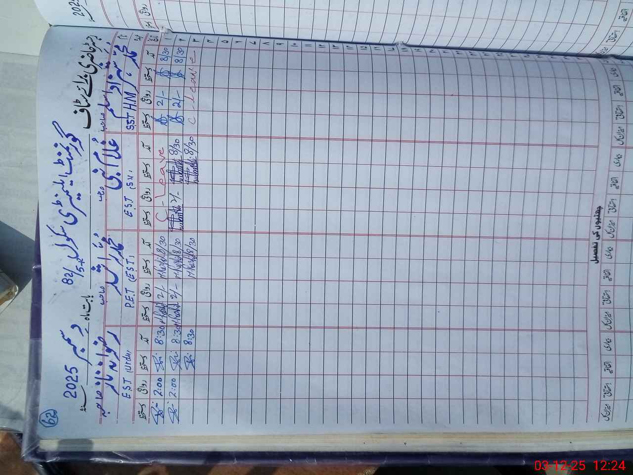 | CNIC | Full Name | Designation | R/C | Absence During Last Calender Month |
