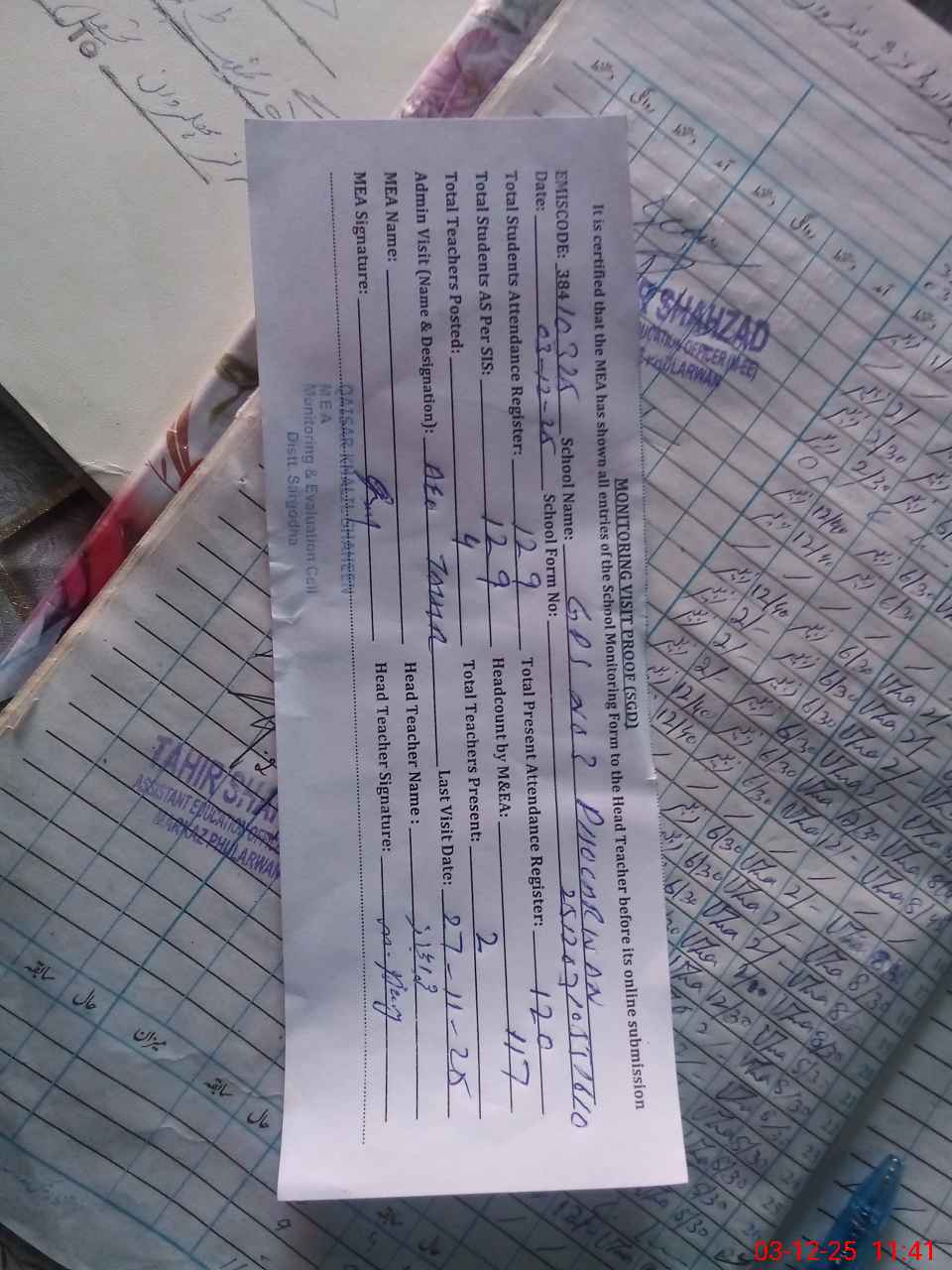 | EMIS Code: 38410325 | Name of School: GPS NO. 3 PHULARWAN | |||