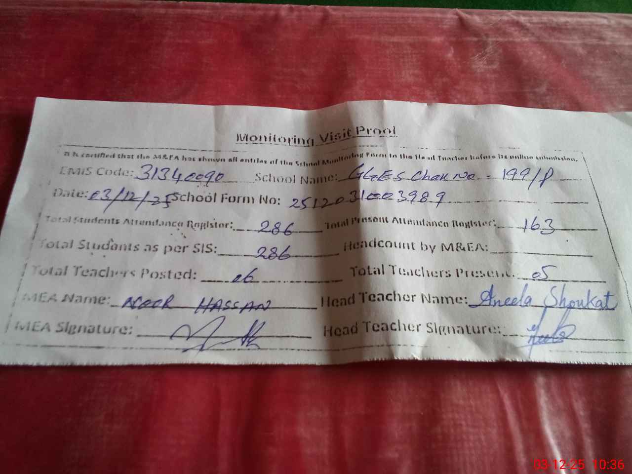 | EMIS Code: 31340090 | Name of School: GGES CHAK NO. 199/P | |||