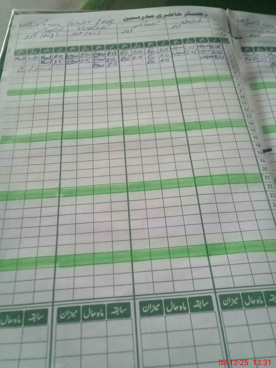 | CNIC | Full Name | Designation | R/C | Absence During Last Calender Month |