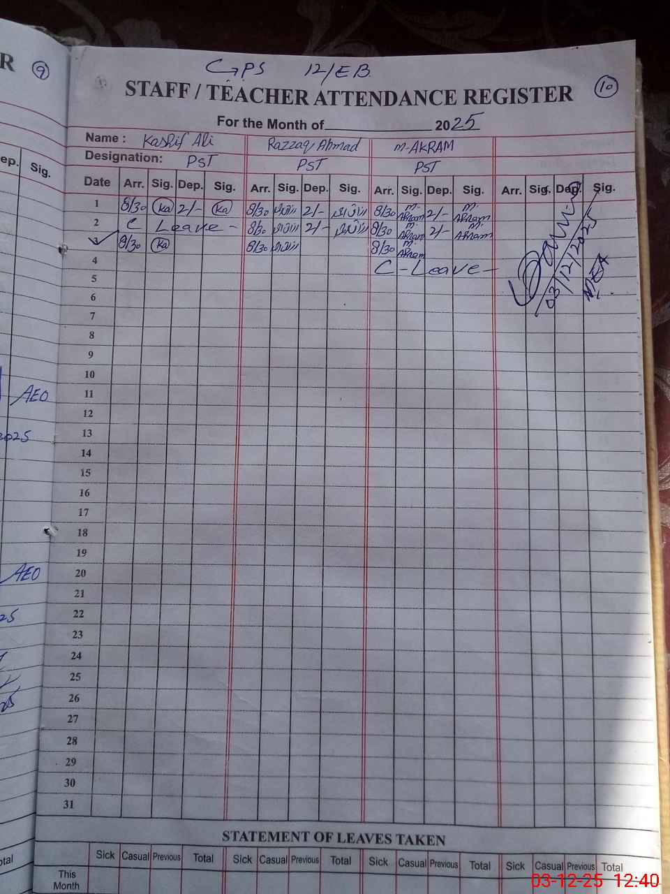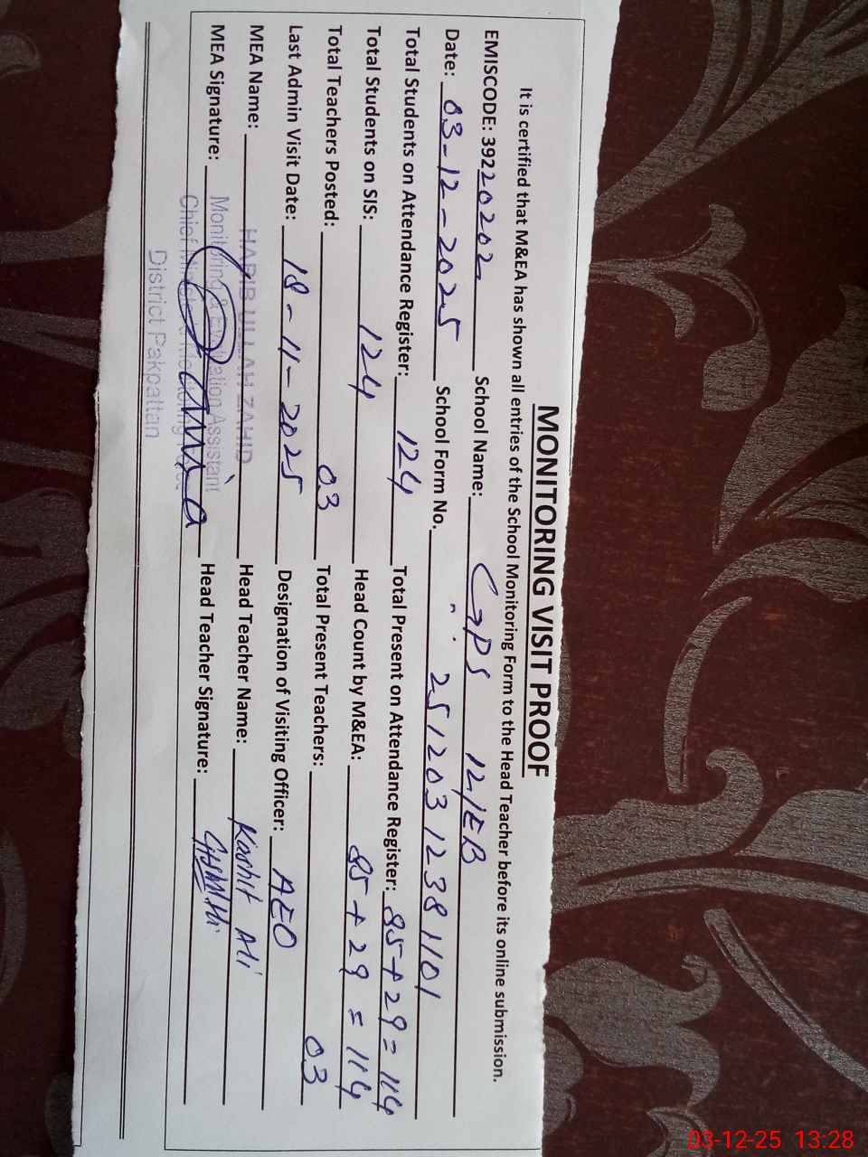 | EMIS Code: 39220202 | Name of School: GPS 12 EB P/O 10/E.B ARIF WALA | |||