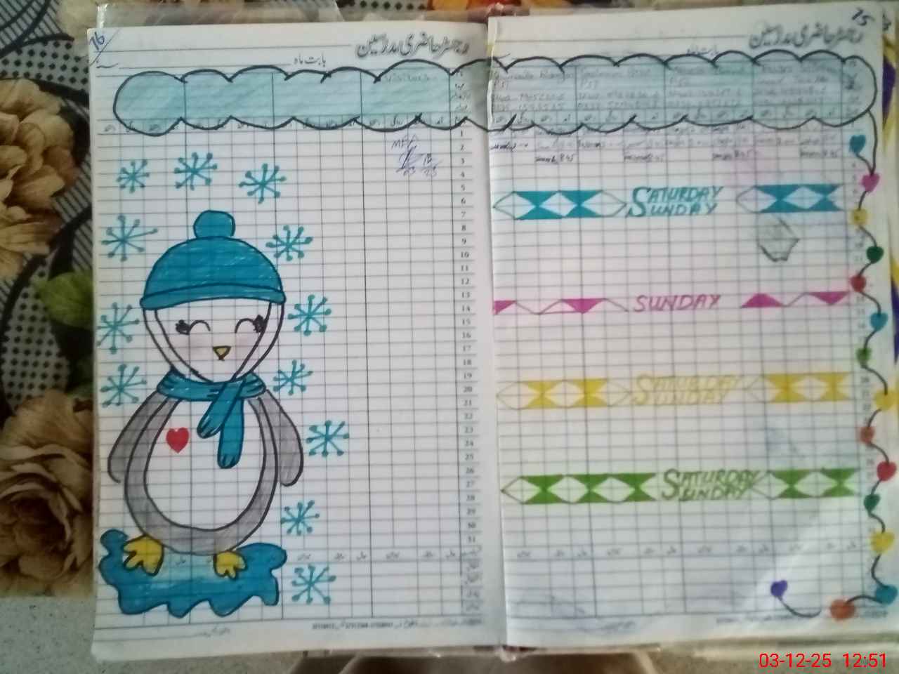| No. of Students Present - Female | 0 | 12 | 10 | 14 | 7 | 5 | 8 | 71 | ||||||||