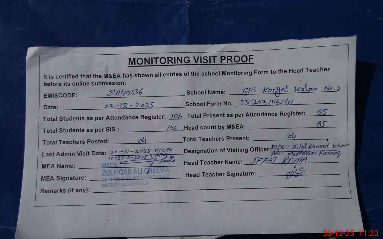 | EMIS Code: 34140136 | Name of School: GPS KARYAL KALAN NO.2 | |||