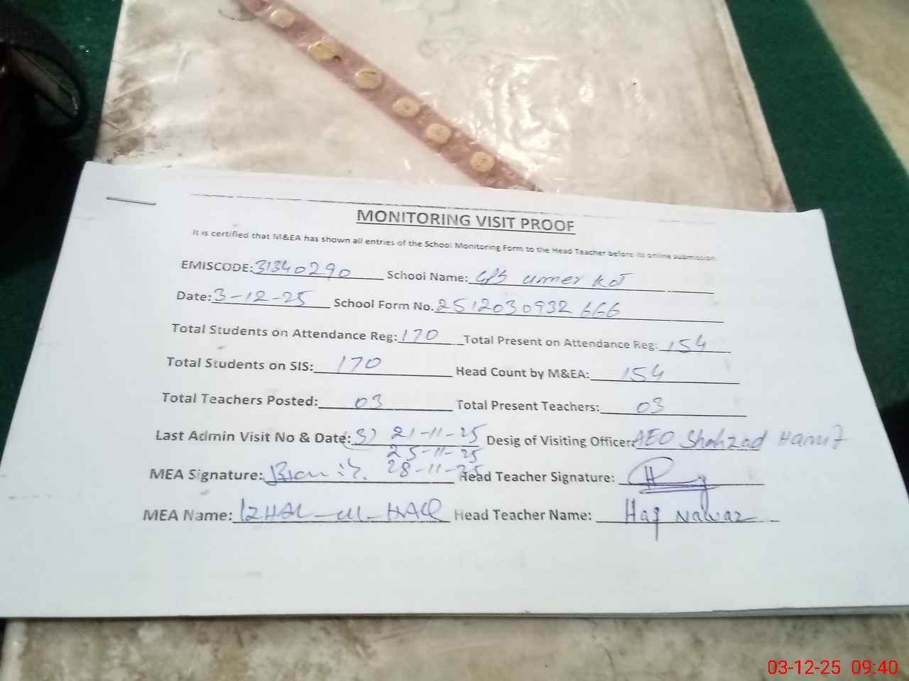 | EMIS Code: 31340290 | Name of School: GPS UMER KOT | |||