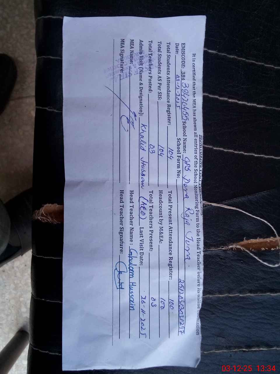 | EMIS Code: 38420455 | Name of School: GPS DERA RAJA JURA | |||