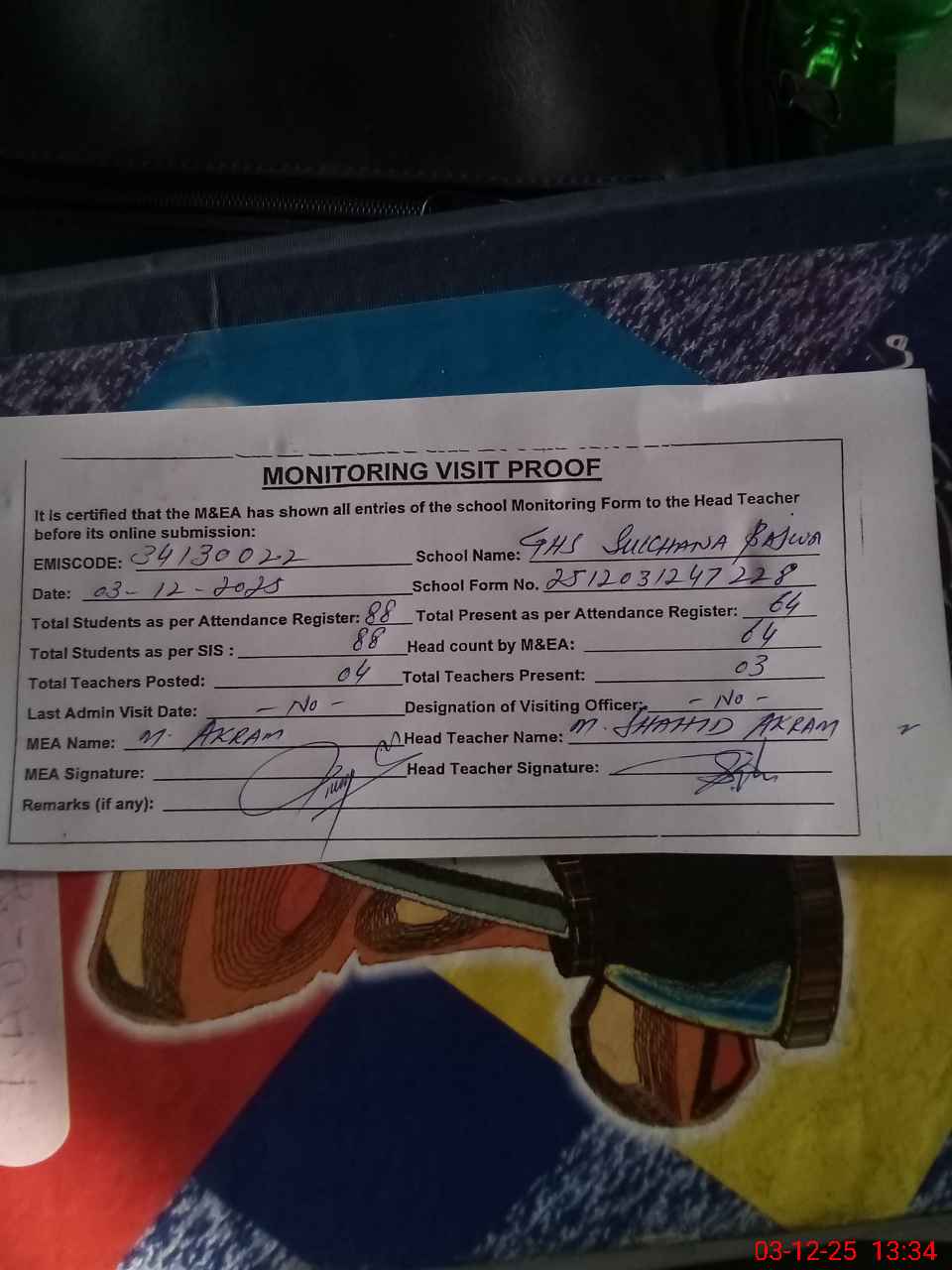 | Name: MU**** SH**** AK**** Designation: (School Headmaster's/Headmistress's) HEAD MASTER Phone/Cell Number: 03**** |
