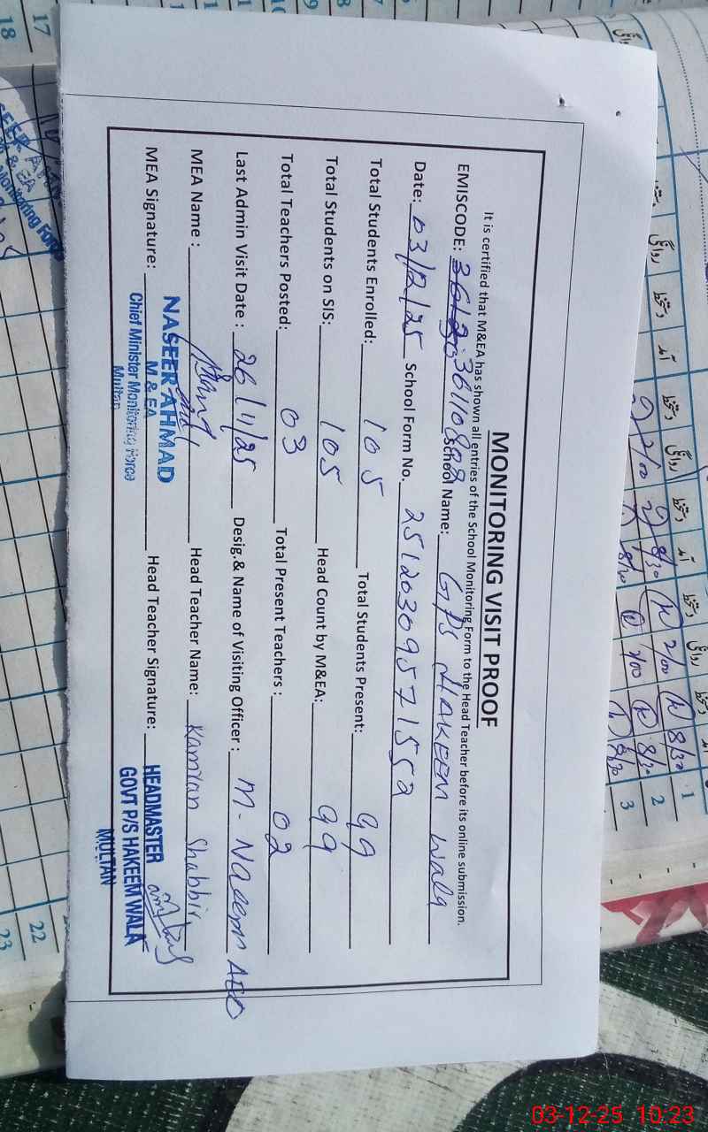 | EMIS Code: 36110802 | Name of School: GPS HAKEEM WALA CHAH KARMU WALA | |||