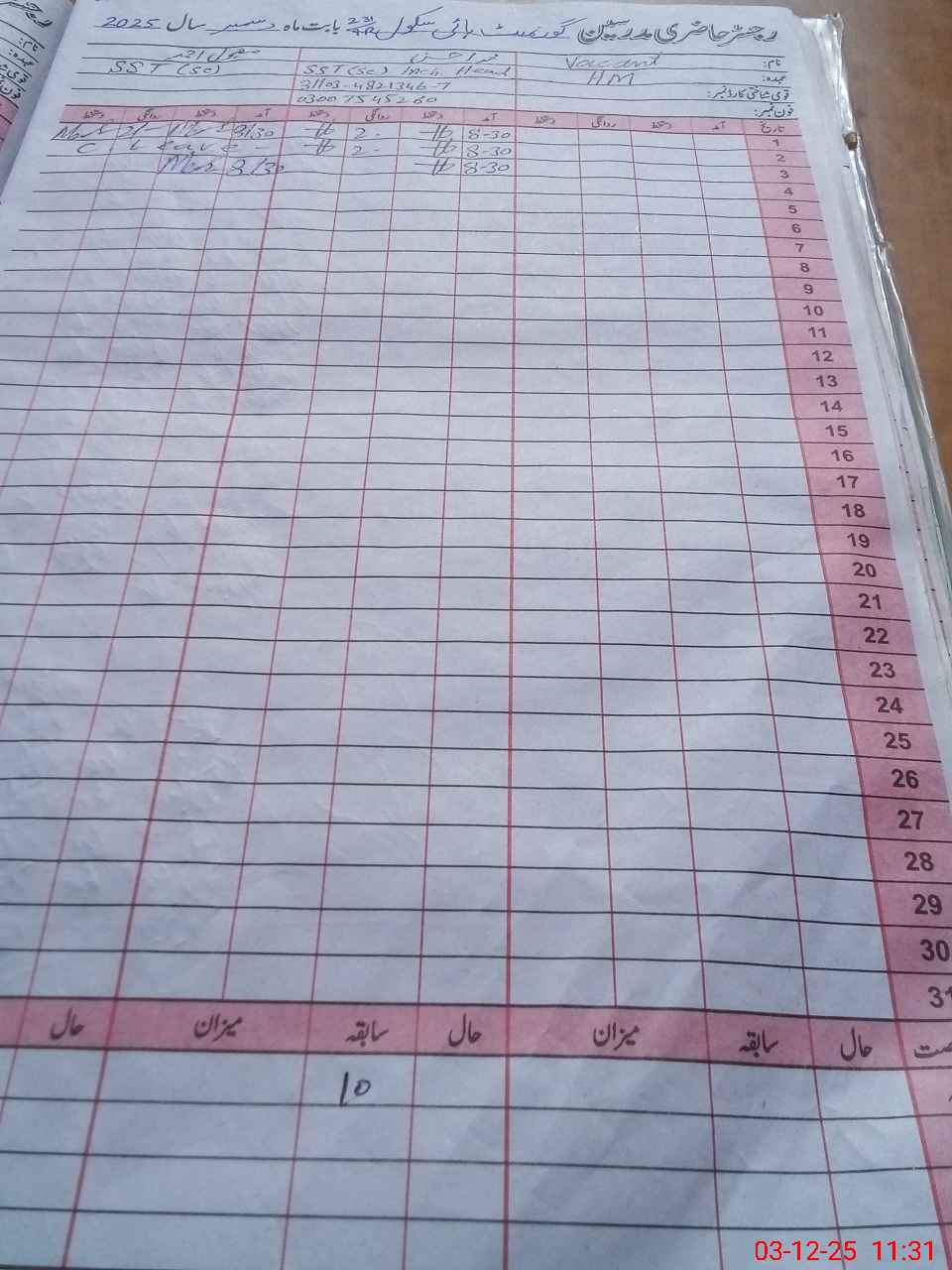 | Name: Mu**** Ah**** Designation: (School Headmaster's/Headmistress's) SST(Sc) Phone/Cell Number: 03**** |