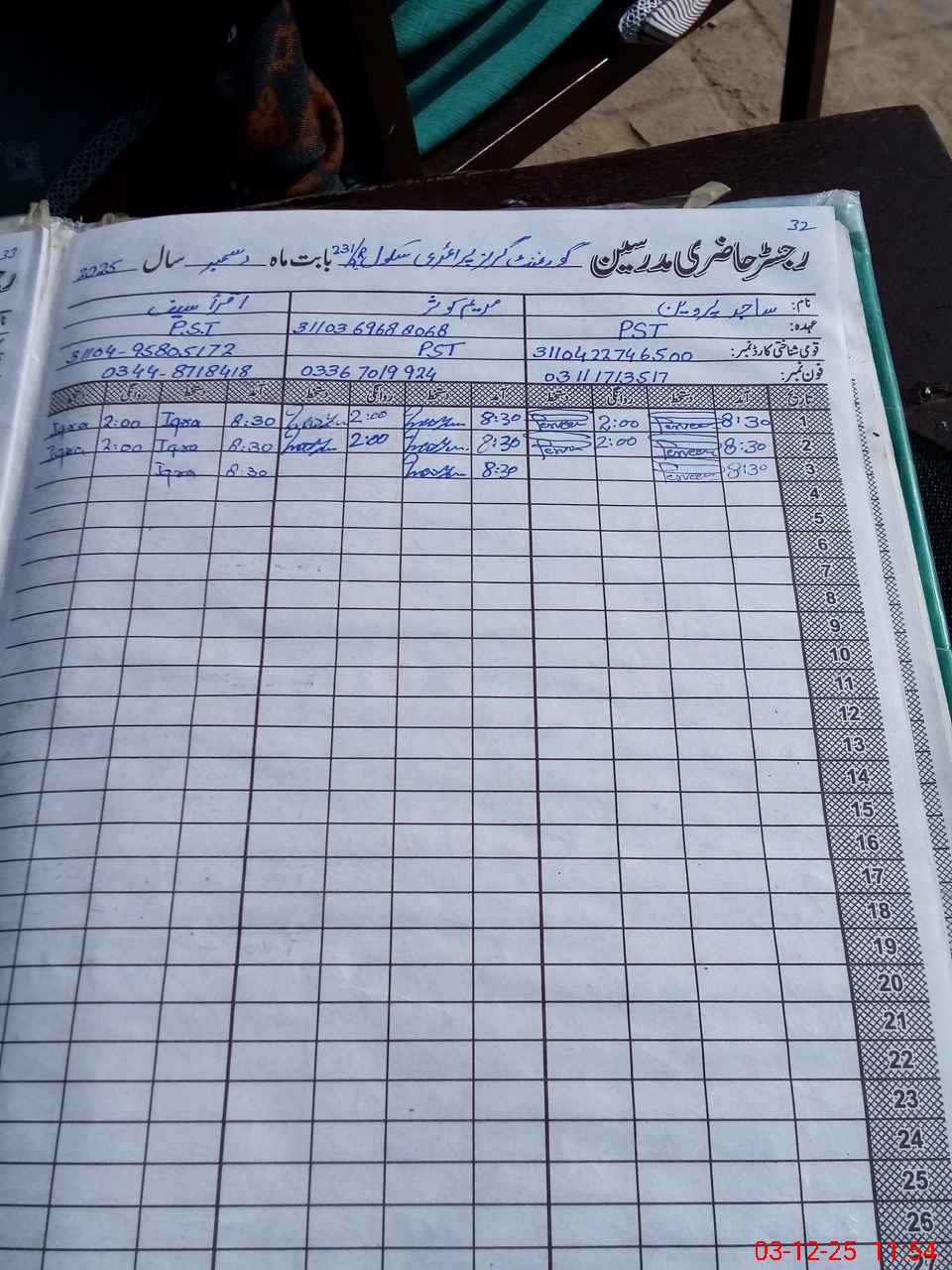 | Name: SA**** PE**** Designation: (School Headmaster's/Headmistress's) PTC/JV Phone/Cell Number: 03**** |