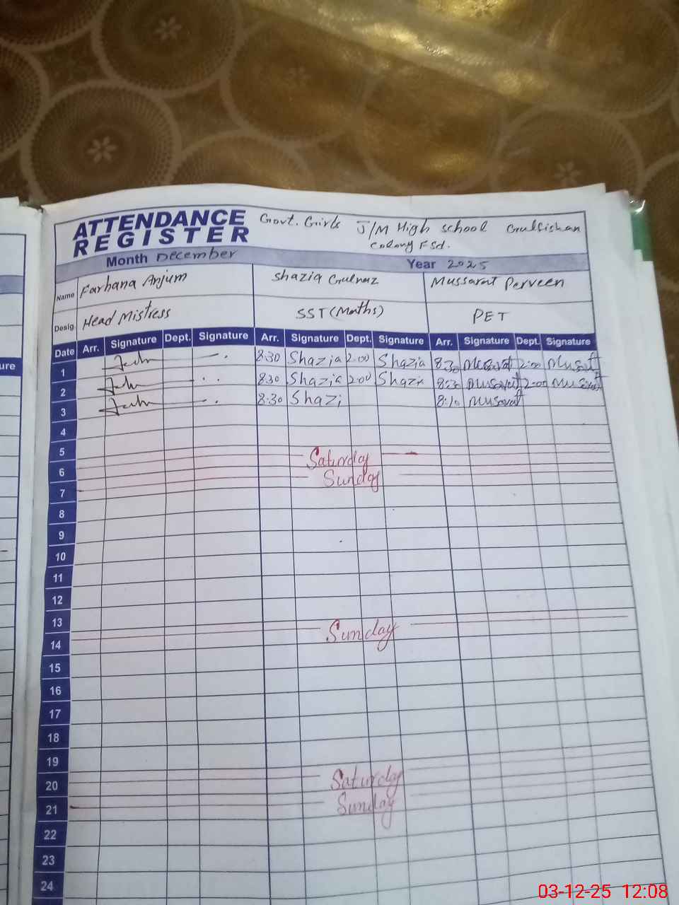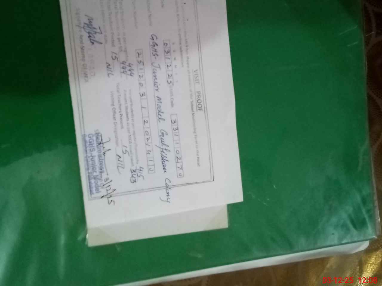 | EMIS Code: 33110270 | Name of School: GGHS JUNIOR MODEL GULFISHAN COLONY | |||