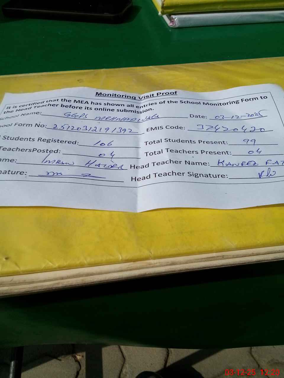 | EMIS Code: 37420420 | Name of School: GGPS MAHMOOD WALA | |||