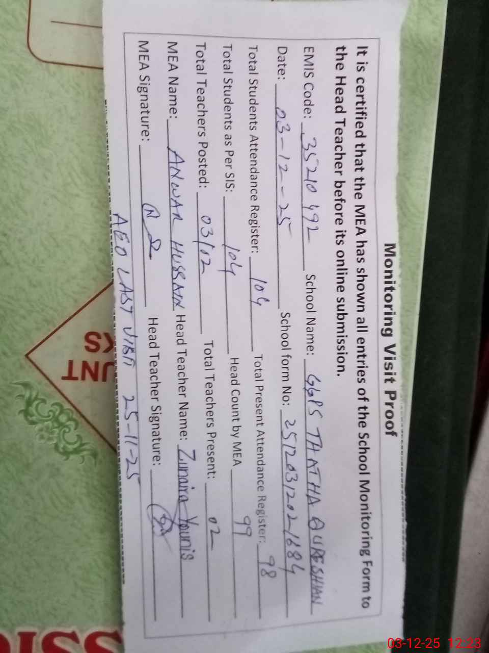 | EMIS Code: 35210492 | Name of School: GGPS THATHA QURESHIAN WALA | |||