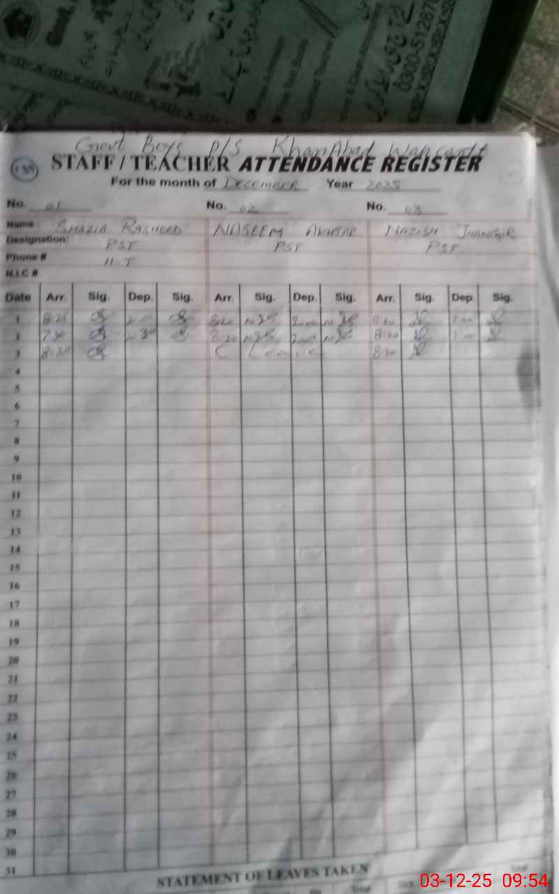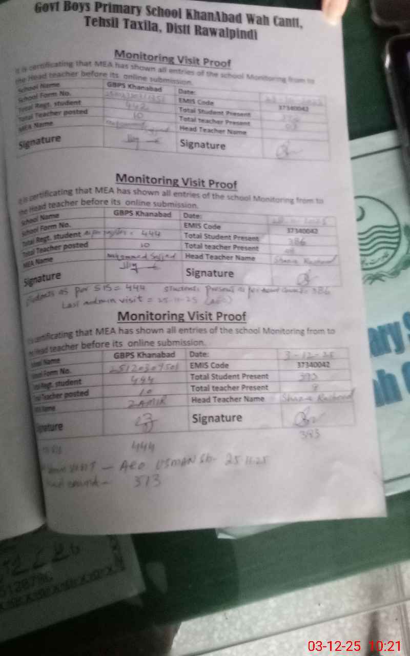 | EMIS Code: 37340042 | Name of School: GPS KHAN ABAD | |||