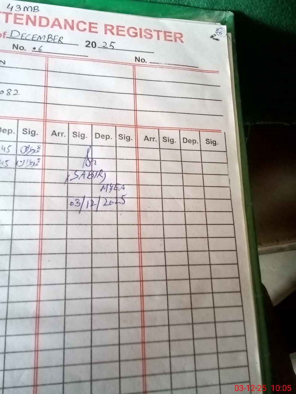 | Remarks (Use Separate Page if Required): no teacher absent total students on register 121 total students on SiS 121 present students 107 last admin visit by AEO on 19 Nov 2025 | |||||
