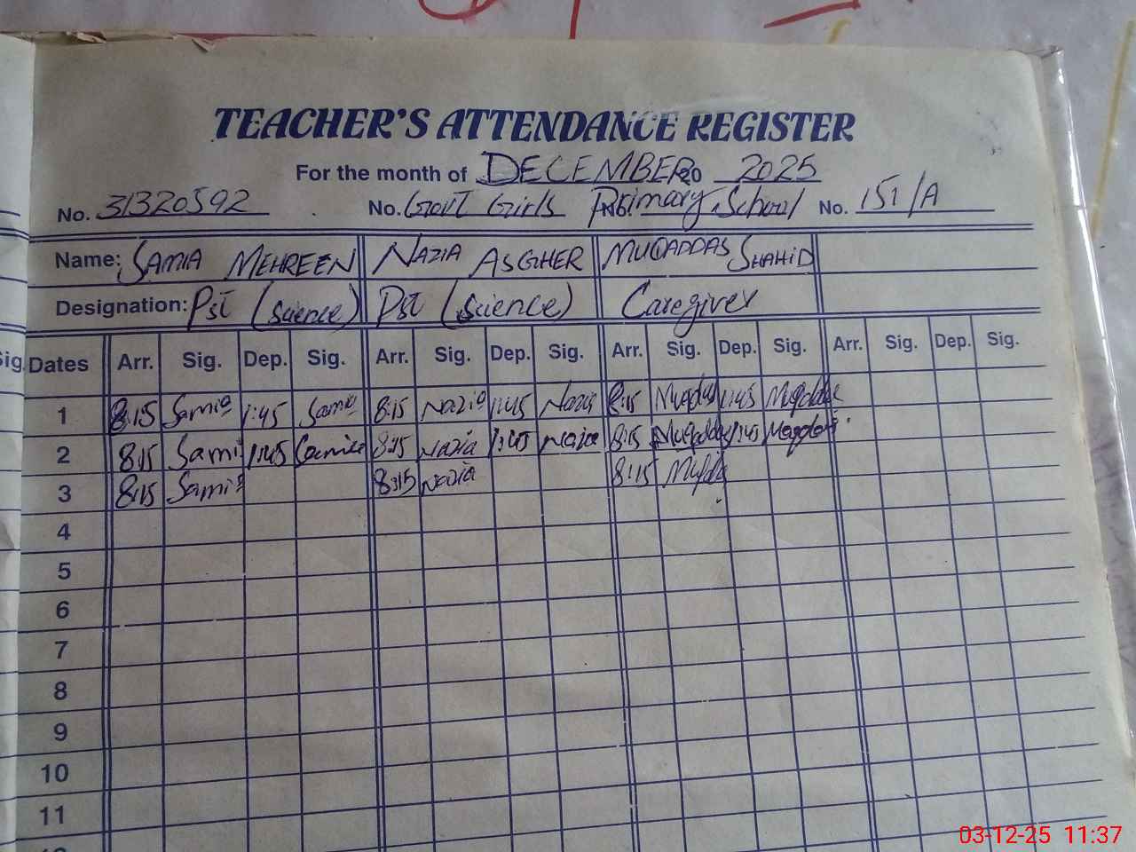 | Name: Sa**** Ma**** Designation: (School Headmaster's/Headmistress's) PST (SCI MATH) Phone/Cell Number: 03**** |