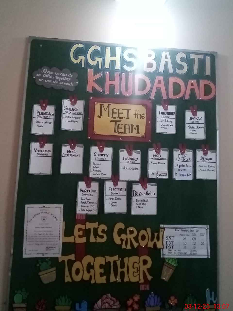 | EMIS Code: 36110084 | Name of School: GGHS BASTI KHUDA DAD MULTAN | |||