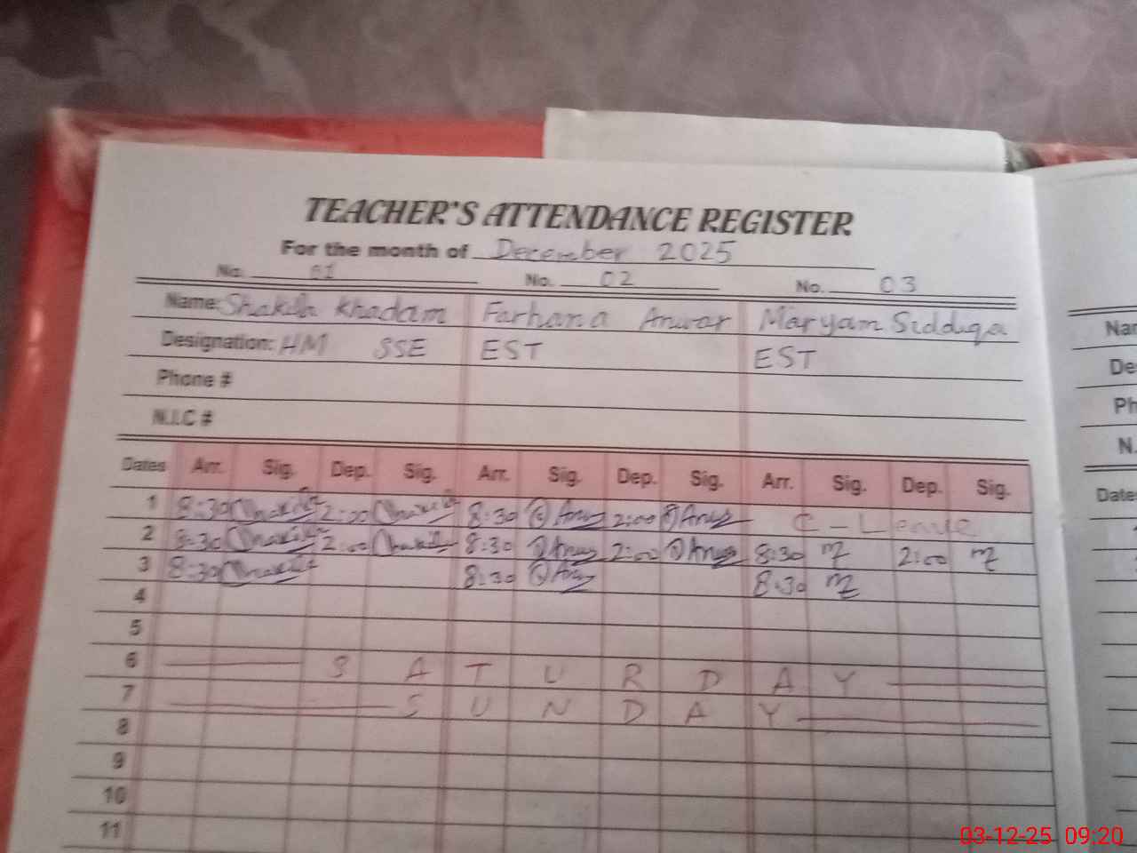 | Name: SH**** KH**** Designation: (School Headmaster's/Headmistress's) Headmistress Phone/Cell Number: 03**** |