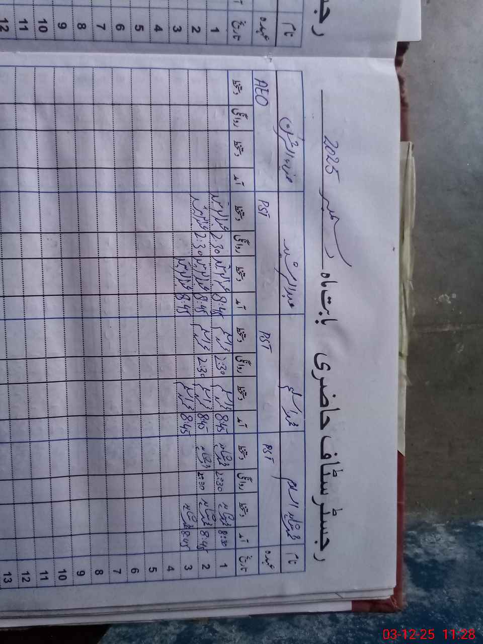 | Monitoring Date: 03-12-2025 | Start Time: 03-12-2025 10:58 AM | End Time: 03-12-2025 11:48 AM | Name of MEA: Ra**** Ma**** Ah**** | |