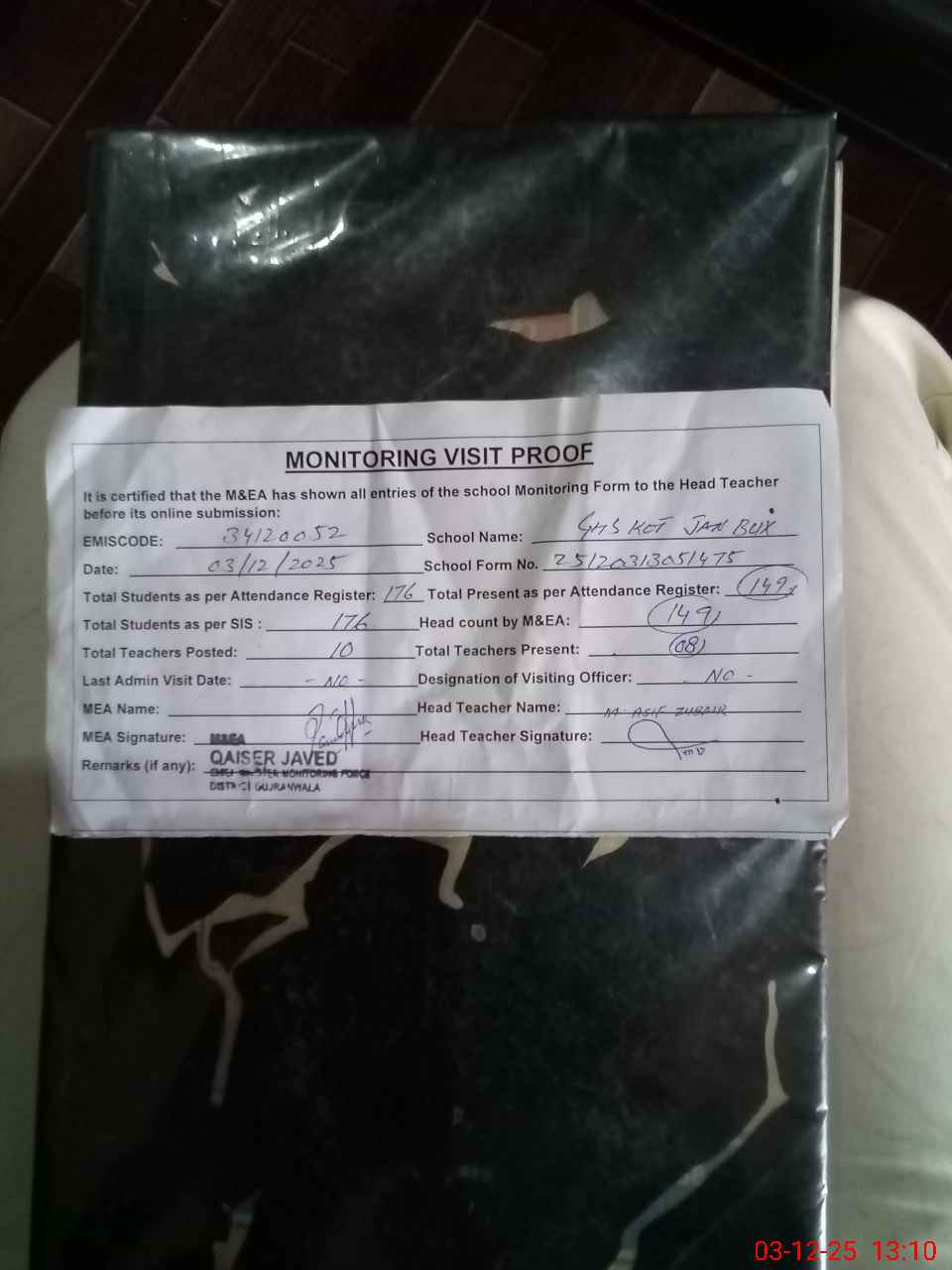 | EMIS Code: 34120052 | Name of School: GHS KOT JAN BUX | |||