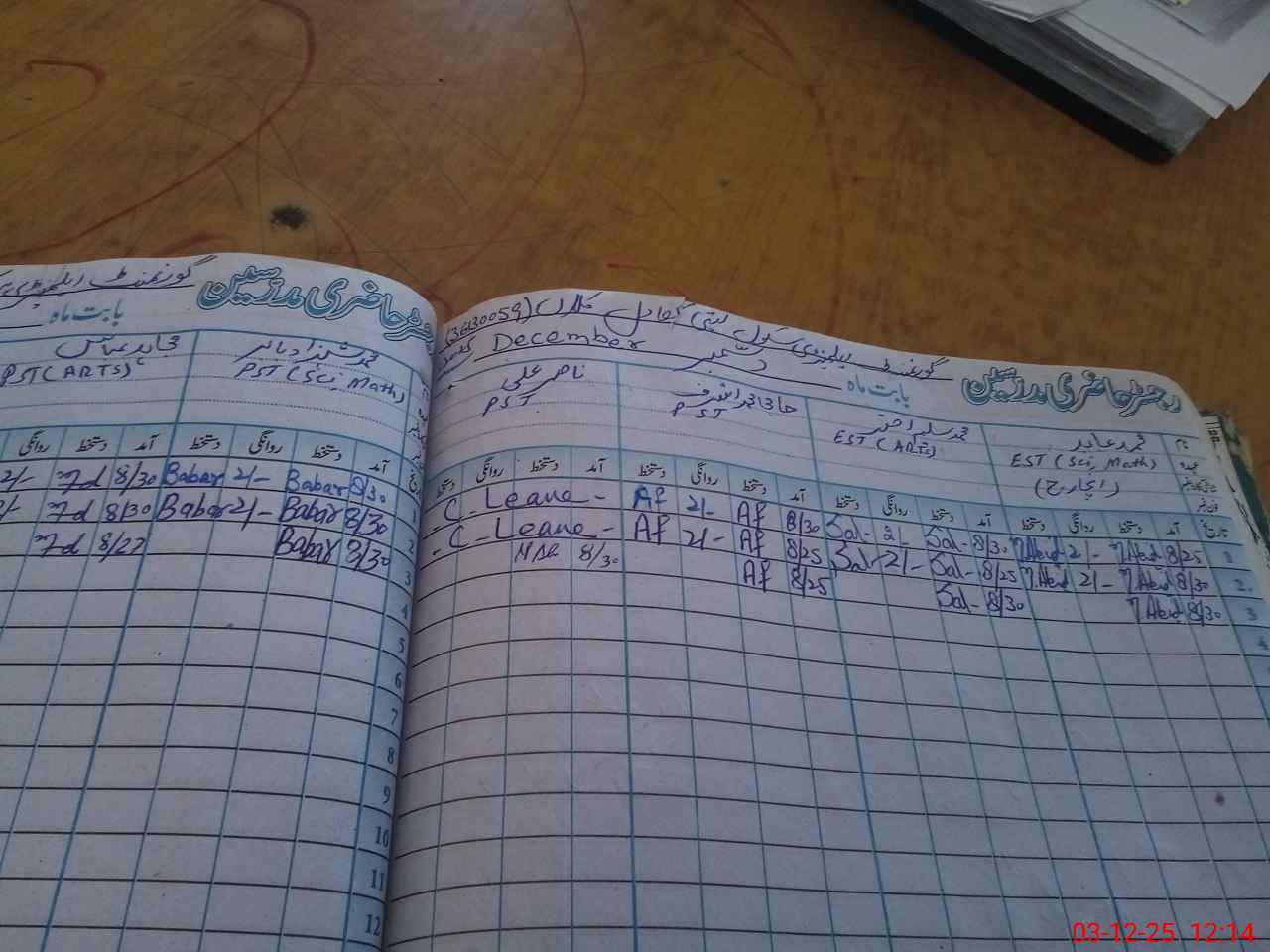 | CNIC | Full Name | Designation | R/C | Absence During Last Calender Month |