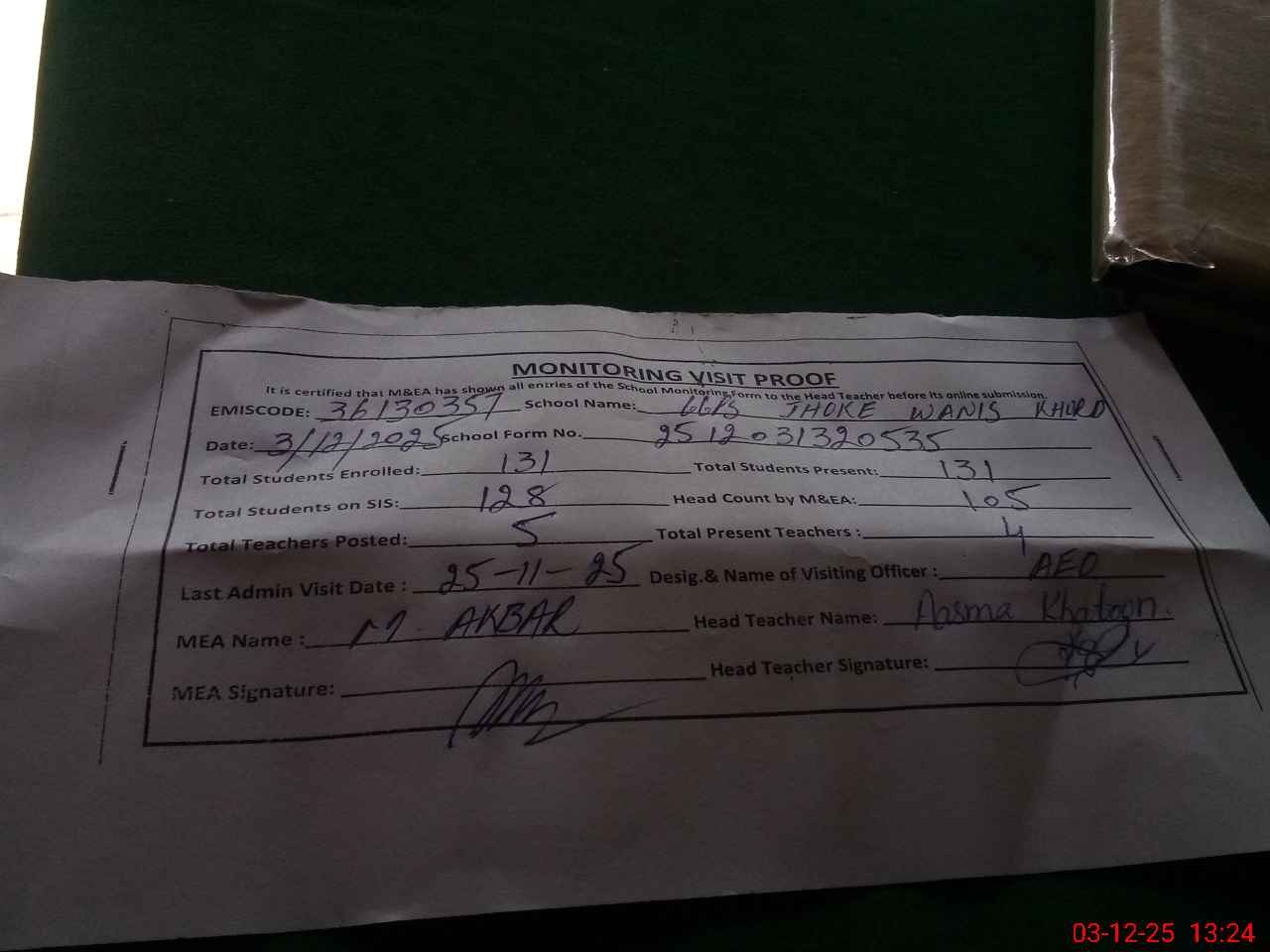 | EMIS Code: 36130357 | Name of School: GGPS JHOKE VAINS KHURD | |||
