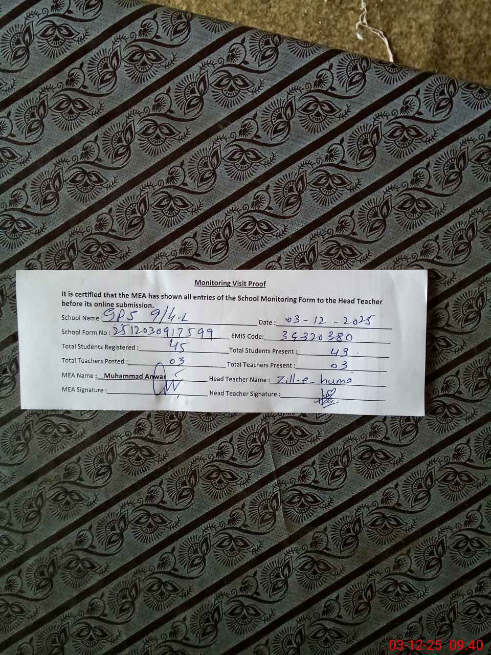 | EMIS Code: 39320380 | Name of School: GPS CHAK NO 9/4-L | |||