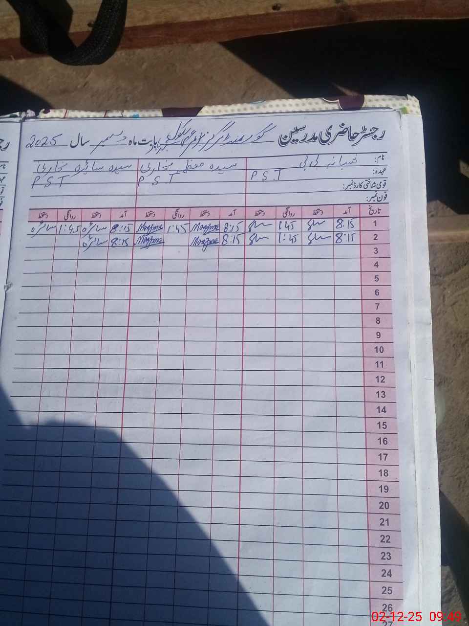 | Name: Sh**** Bi**** Designation: (School Headmaster's/Headmistress's) PST/PTC/JV Phone/Cell Number: 03**** |