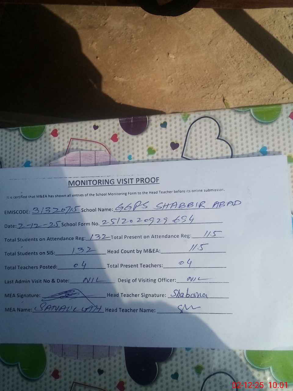 | EMIS Code: 31320715 | Name of School: GGPS SHABBIR ABAD | |||