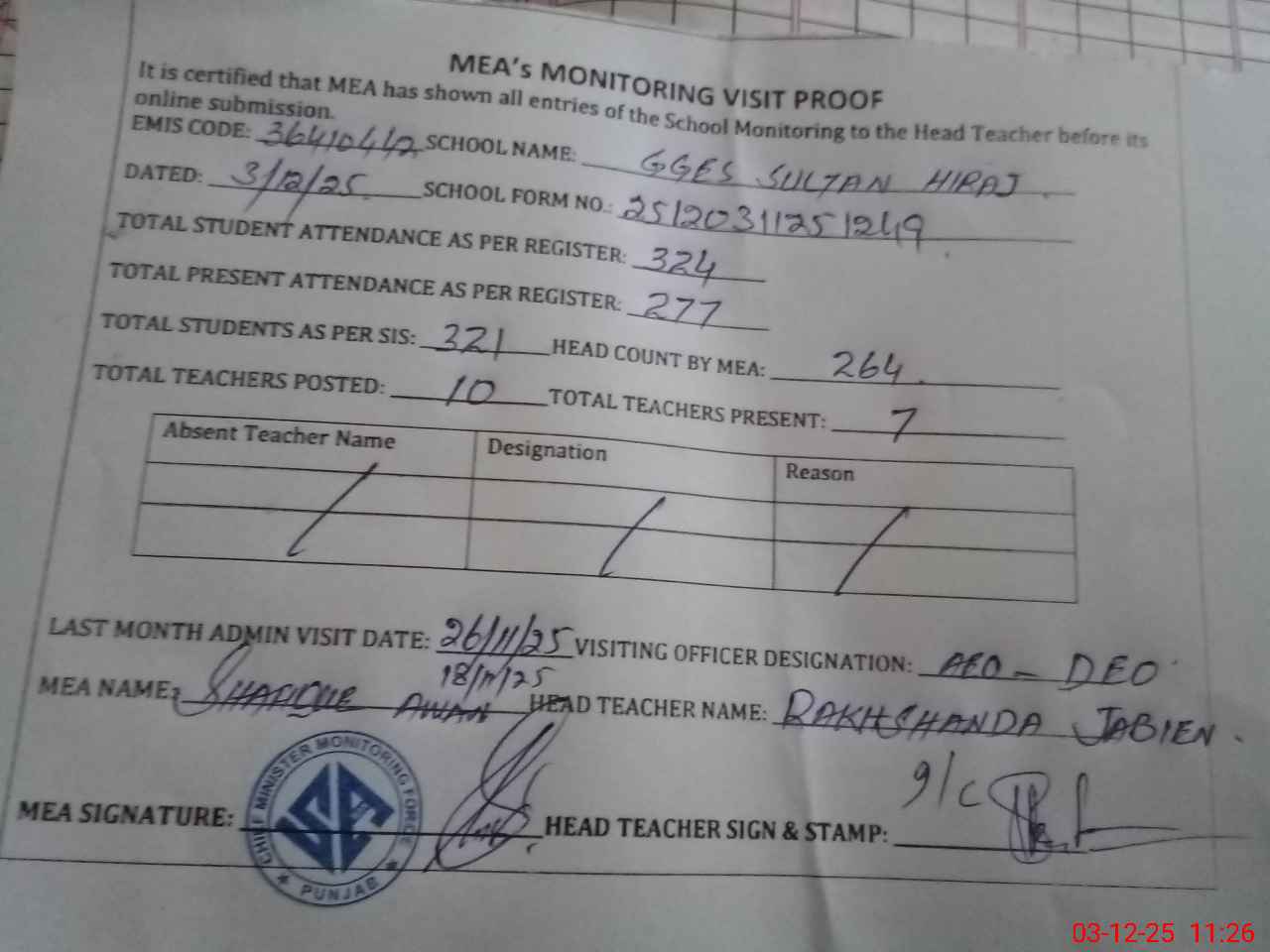 | EMIS Code: 36410442 | Name of School: GGES SULTAN HERAJ, ABDUL HAKIM | |||