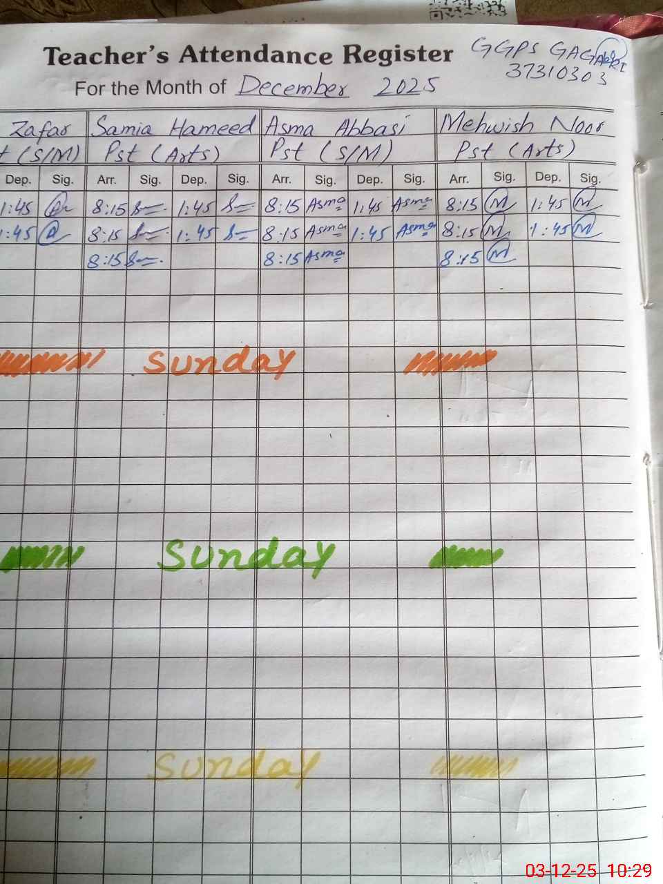 | Name: AN**** ZA**** Designation: (School Headmaster's/Headmistress's) PST Sci Math Phone/Cell Number: 03**** |