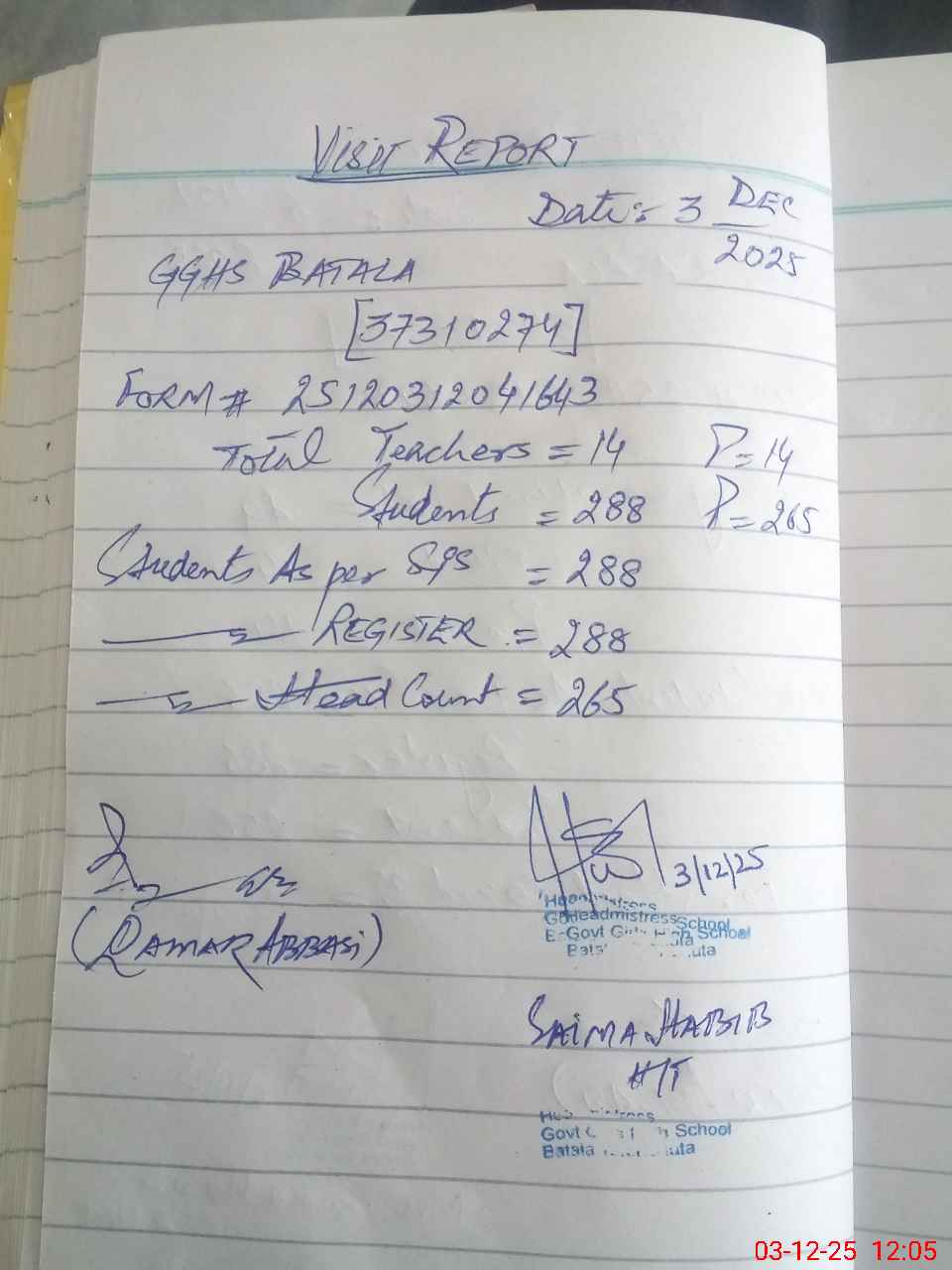 | EMIS Code: 37310274 | Name of School: GGHS BATALA | |||